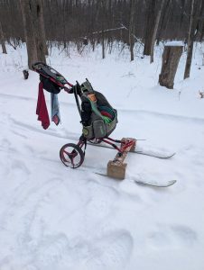 To keep in the snow theme, don’t let some snow dissuade you from using your cart. Head out to Pfrommer Woods and pick up your custom Skart. This is my third attempt, and I am thrilled with the end result. It slides along almost effortlessly and allows me to carry the shovel.